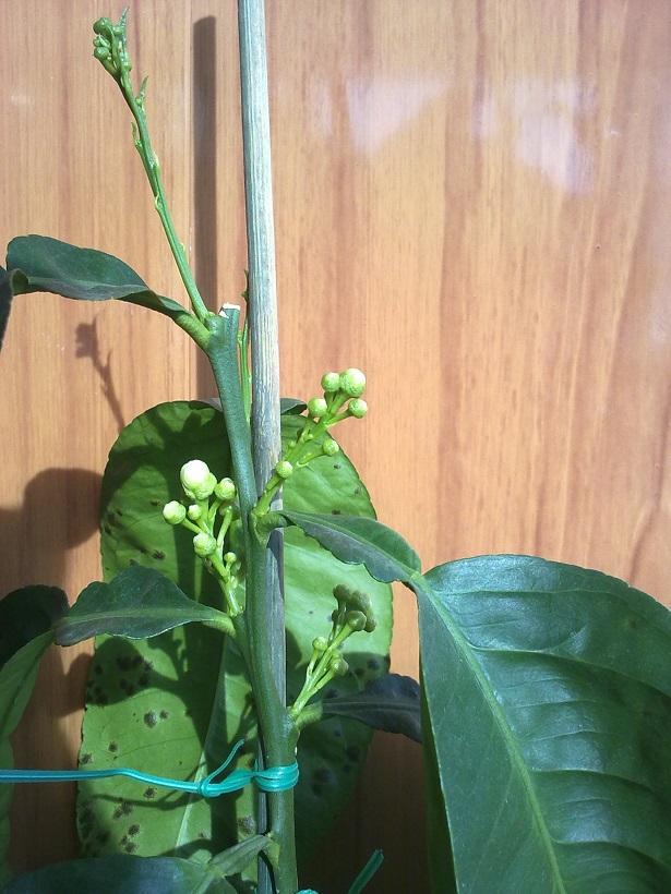 Также началось цветение грейпфрута, при этом не перестает гнать новые бутоны, хотя уже практически весь усыпан цветами