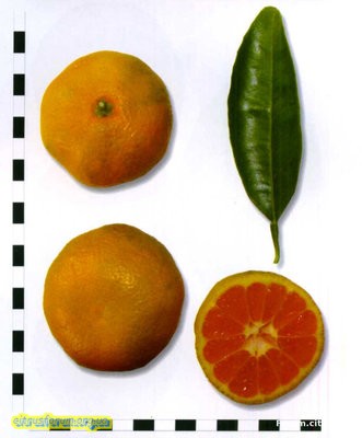 Плоди: округло-плескуваті, середньої величини, вершина злегка вдавлена маса одного плоду близько 103г. Шкірка гладенька, тонка 2-3 мм товщини, яскраво помаранчева, відділяється від м'якоті добре. Часточок 8-11, з тонкими плівками.